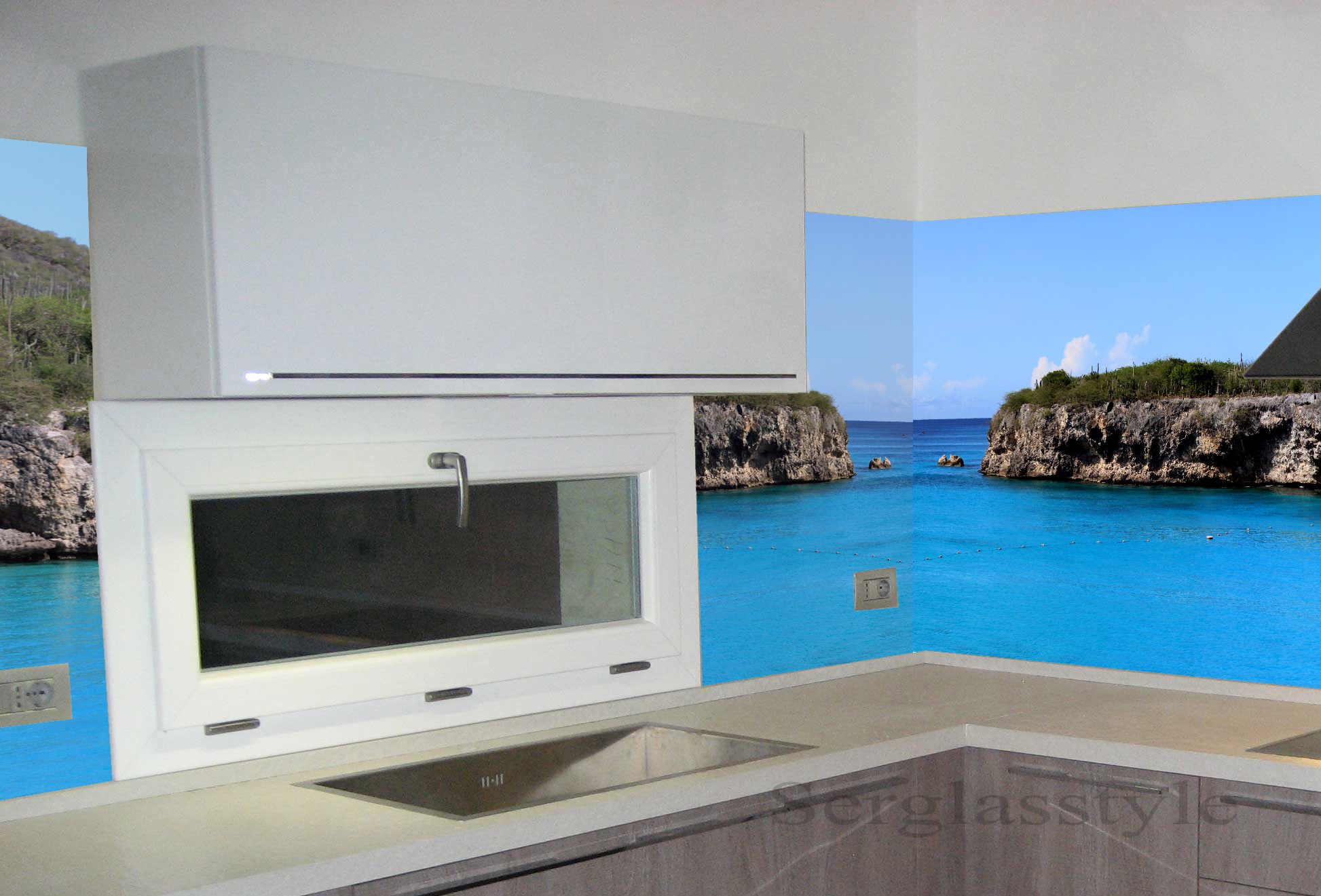 Acquario in vetro stratificato frontale cucina coloratissimo vetro